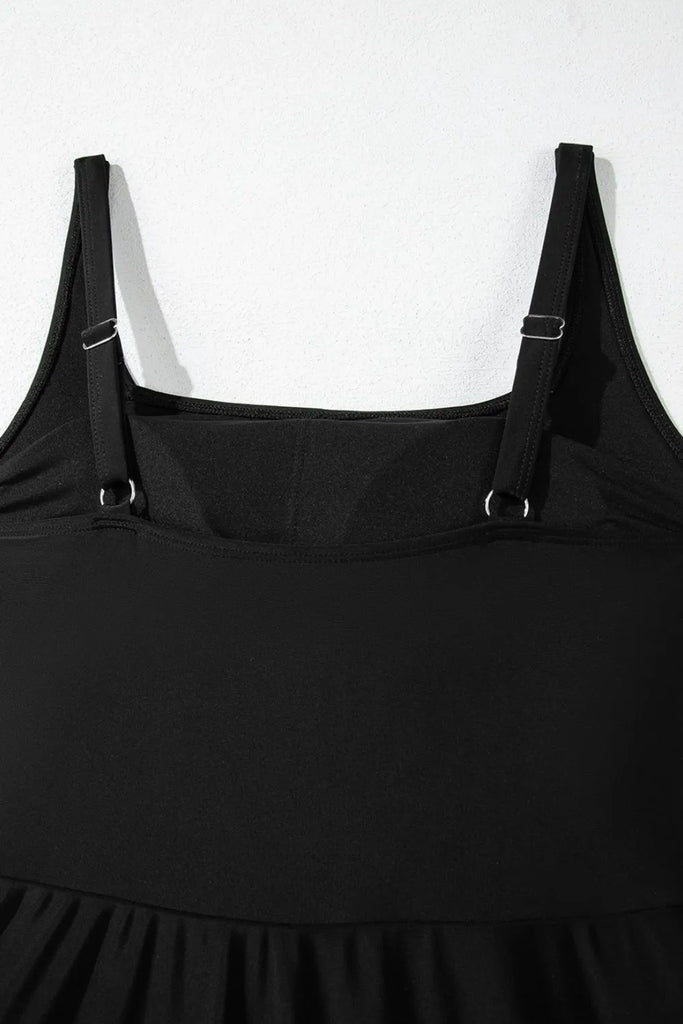 Side Tied Waist Square Neck Adjustable Straps A-line One Piece Swim Dress